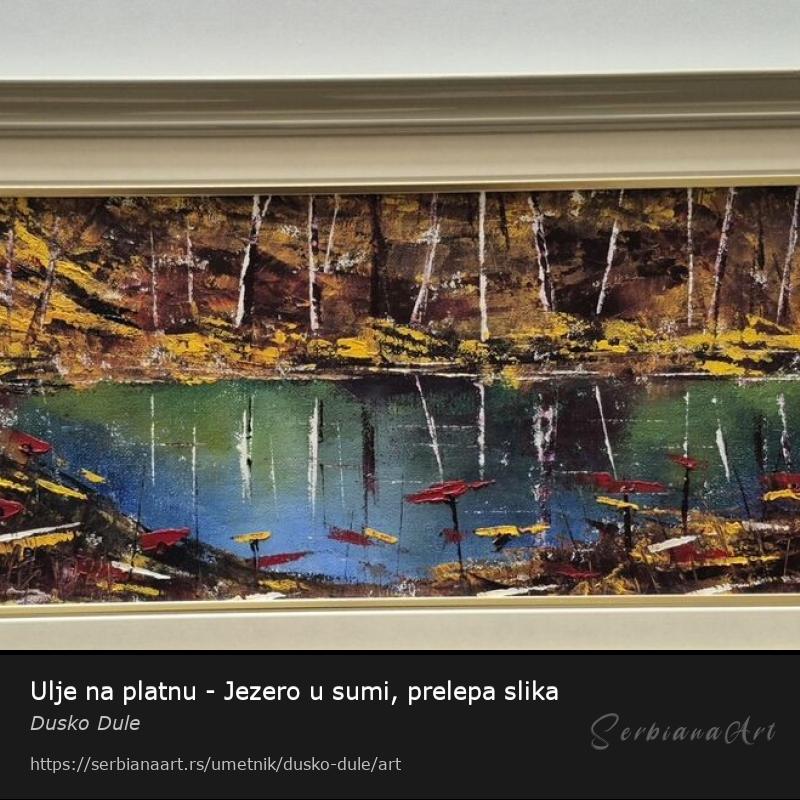 Ulje na platnu Jezero u sumi, prelepo umetnicko delo. Slika je uramljena u jako lep ram, dimenzije slike sa ramom 50 x 30. Privatna kolekcija.