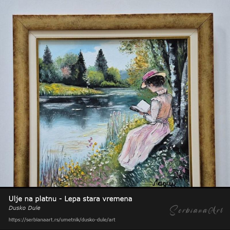 Ulje na platnu Lepa stara vremena, prelepo umetnicko delo. Slika je uramljena u jako lep ram, dimenzije slike sa ramom 52 x 52. Privatna kolekcija.
