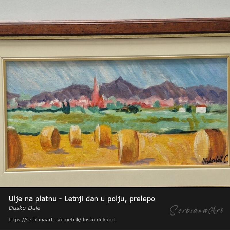 Ulje na platnu Letnji dan u polju, prelepo umetnicko delo. Slika je uramljena u jako lep ram, dimenzije slike sa ramom 53 x 33. Privatna kolekcija.