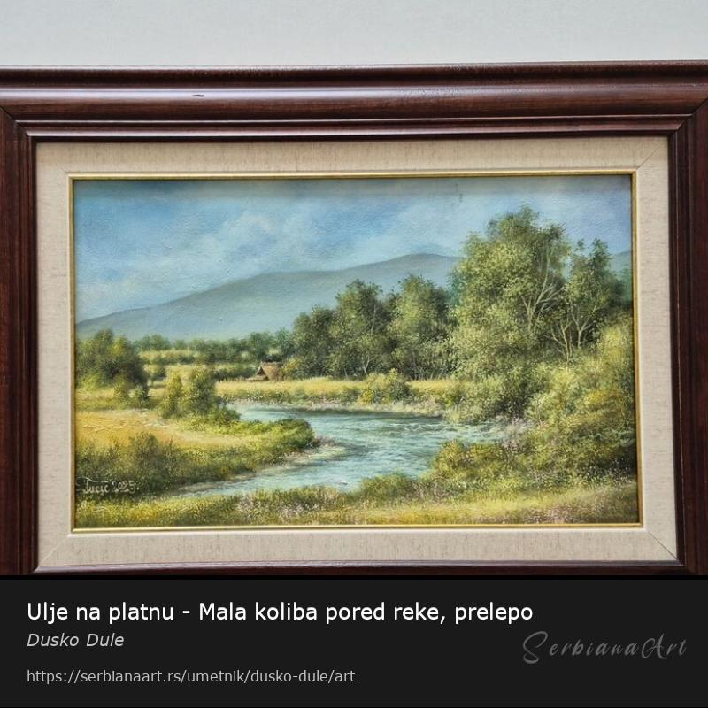 Ulje na platnu - Mala koliba pored reke, prelepo