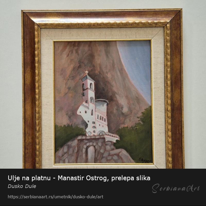 Ulje na platnu Manastir Ostrog, prelepo umetnicko delo. Slika je uramljena u jako lep ram, dimenzije slike sa ramom 45 x 39. Privatna kolekcija.
