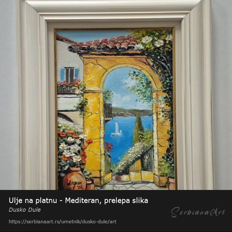 Ulje na platnu Mediteran, prelepo umetnicko delo. Slika je uramljena u jako lep ram, dimenzije slike sa ramom 50 x 40. Privatna kolekcija.