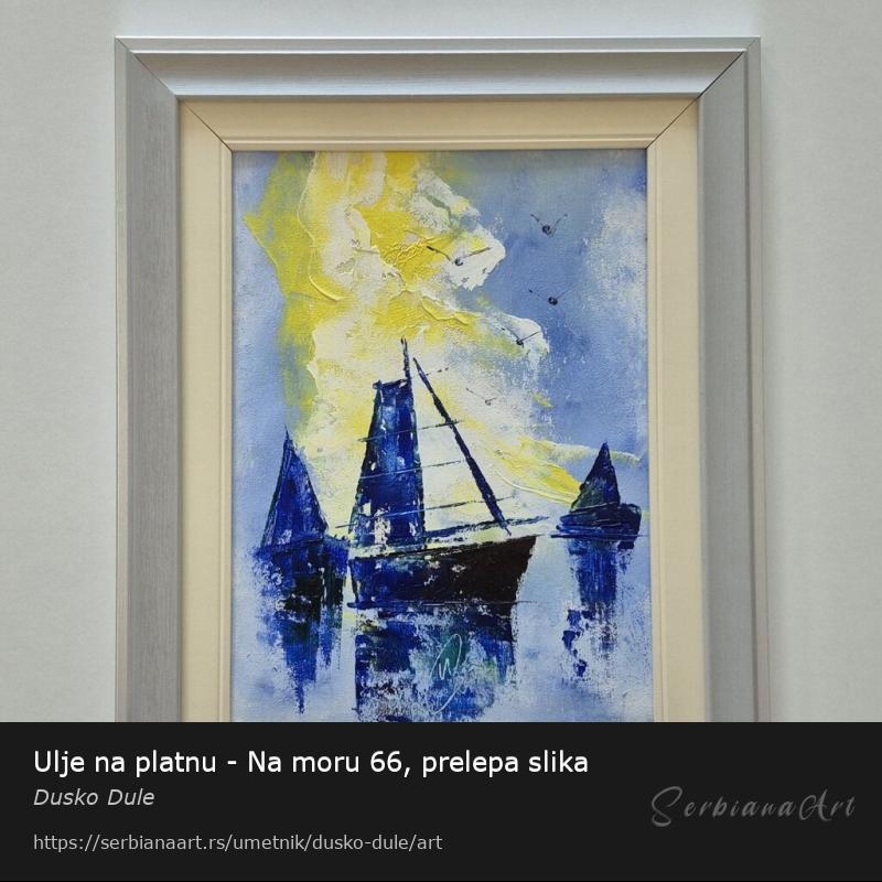 Ulje na platnu Na moru 66, prelepo umetnicko delo. Slika je uramljena u jako lep ram, dimenzije slike sa ramom 45 x 35. Privatna kolekcija.