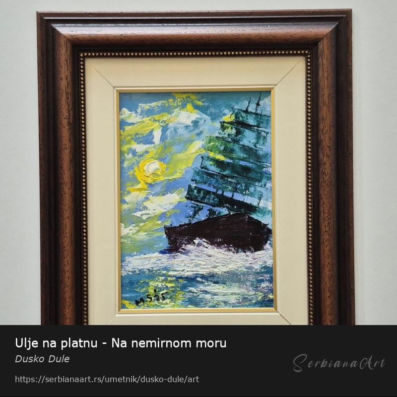 Ulje na platnu Nanemirnom moru, prelepo umetnicko delo. Slika je uramljena u jako lep ram, dimenzije slike sa ramom 44 x 37. Privatna kolekcija.