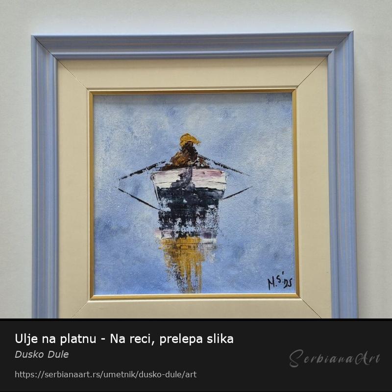 Ulje na platnu Na reci, prelepo umetnicko delo. Slika je uramljena u jako lep ram, dimenzije slike sa ramom 34 x 34. Privatna kolekcija.