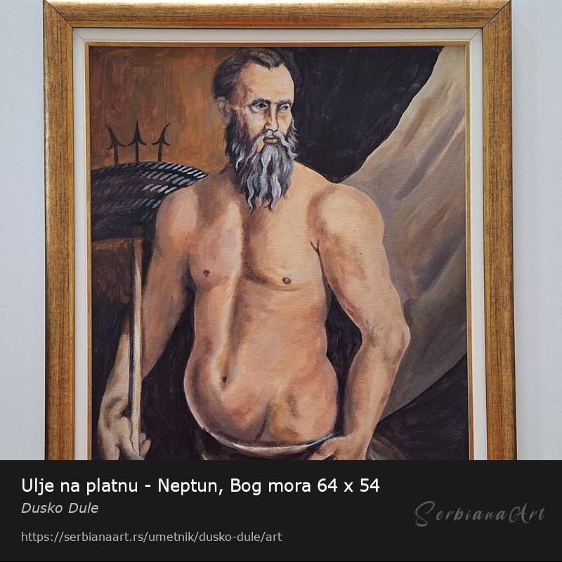 Ulje na platnu Neptun, prelepo umetnicko delo. Slika je uramljena u jako lep, luksuzan ram. Dimenzije slike sa ramom 64 x 54. Privatna kolekcija.