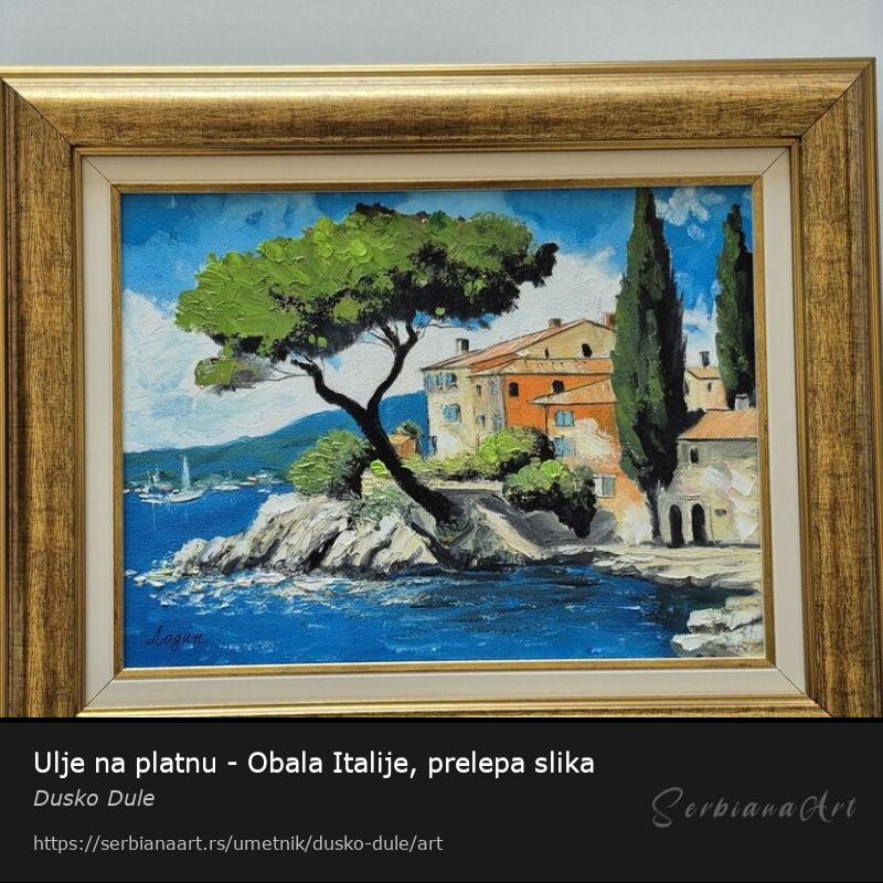 Ulje na platnu Obala Italije, prelepo umetnicko delo. Slika je uramljena u jako lep ram, dimenzije slike sa ramom 56 x 46. Privatna kolekcija.