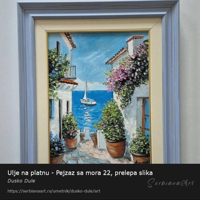 Ulje na platnu Pejzaz sa mora 22, prelepo umetnicko delo. Slika je uramljena u jako lep ram, dimenzije slike sa ramom 57 x 47. Privatna kolekcija.