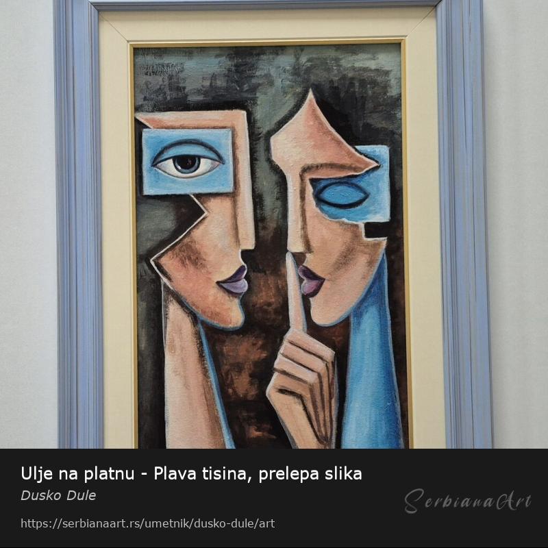 Ulje na platnu Plava tisina, prelepo umetnicko delo. Slika je uramljena u jako lep ram, dimenzije slike sa ramom 66 x 46. Privatna kolekcija.