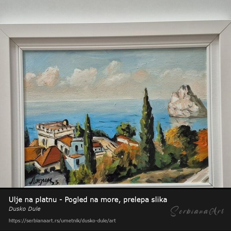 Ulje na platnu Pogled na more, prelepo umetnicko delo. Slika je uramljena u jako lep ram, dimenzije slike sa ramom 50 x 40. Privatna kolekcija.