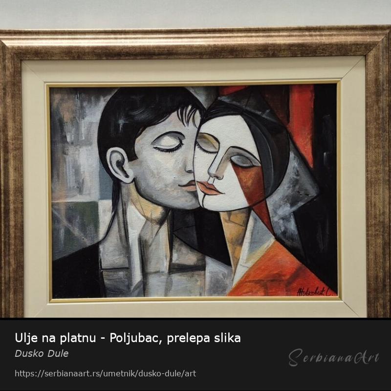 Ulje na platnu Poljubac, prelepo umetnicko delo. Slika je uramljena u jako lep ram, dimenzije slike sa ramom 55 x 45. Privatna kolekcija.