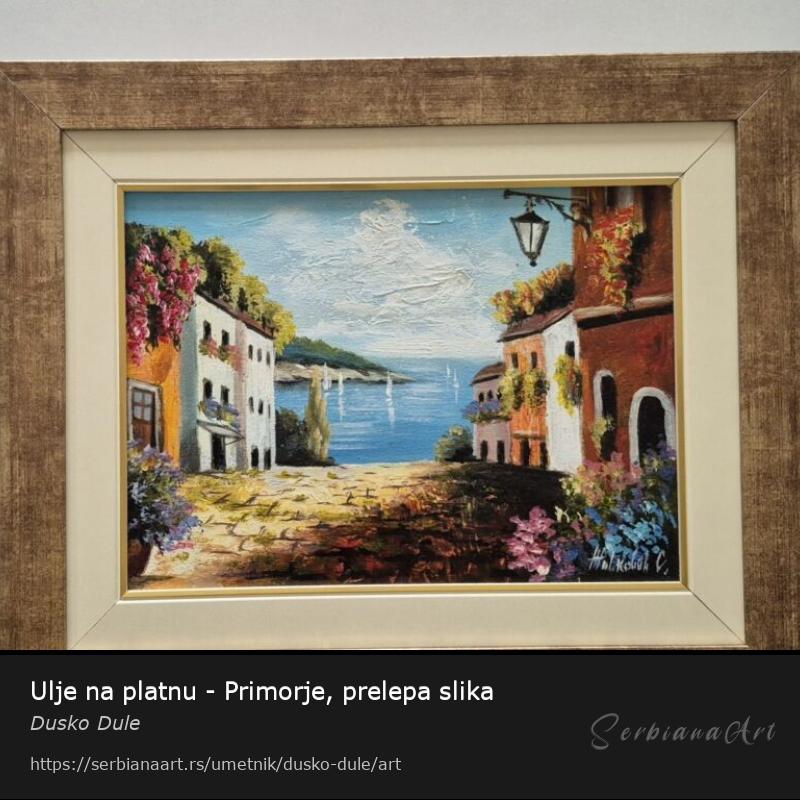 Ulje na platnu Primorje, prelepo umetnicko delo. Slika je uramljena u jako lep ram, dimenzije slike sa ramom 49 x 39. Privatna kolekcija.