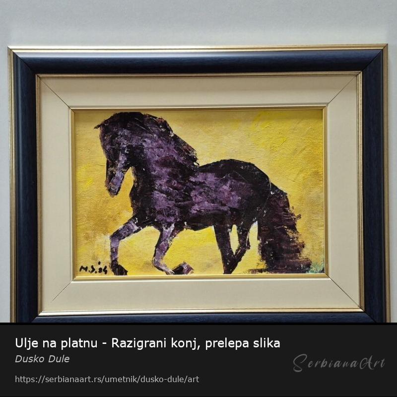 Ulje na platnu Razigrani konj, prelepo umetnicko delo. Slika je uramljena u jako lep ram, dimenzije slike sa ramom 45 x 35. Privatna kolekcija.