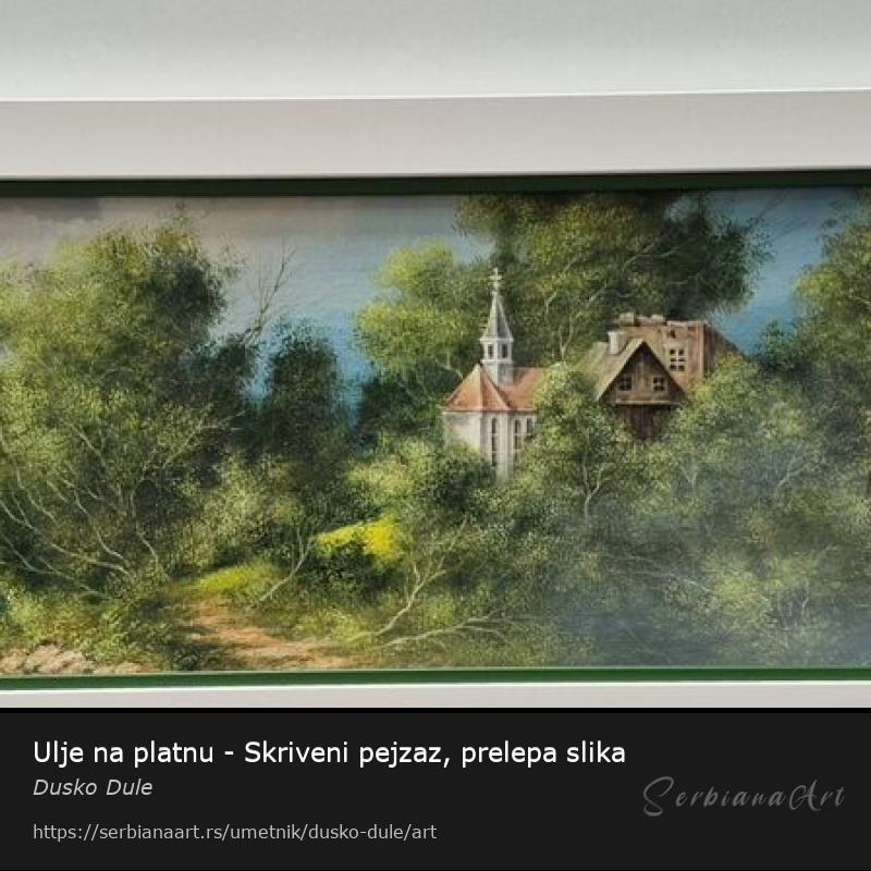 Ulje na platnu Skriveni pejzaz, prelepo umetnicko delo. Slika je uramljena u jako lep ram, dimenzije slike sa ramom 68 x 26. Privatna kolekcija.