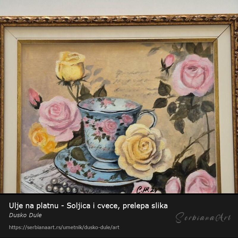 Ulje na platnu Soljica i cvece, prelepo umetnicko delo, slika je uramljena u jako lep ram, dimenzije slike sa ramom 37 x 31. Privatna kolekcija.