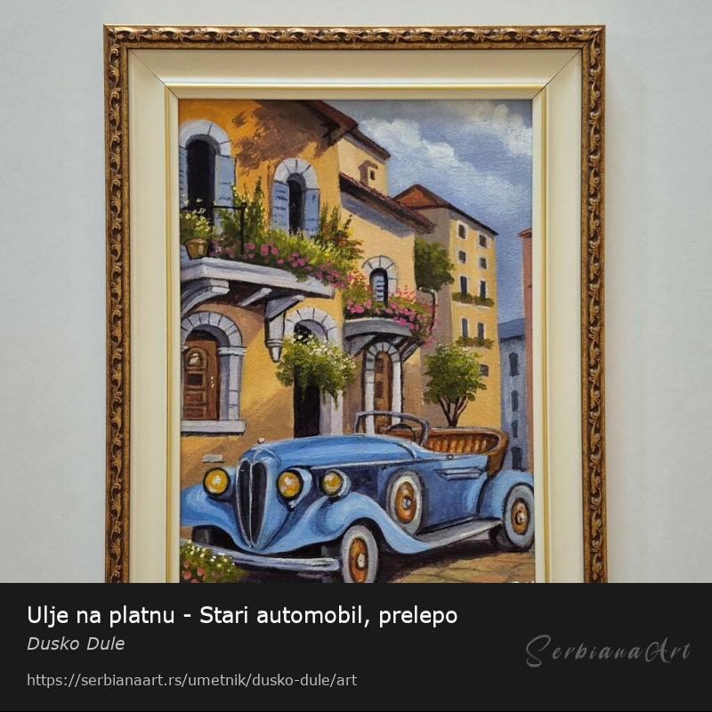 Ulje na platnu Stari automobil, prelepo umetnicko delo. Slika je uramljena u jako lep ram, dimenzije slike sa ramom 45 x 35. Privatna kolekcija.