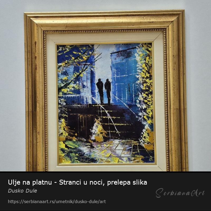 Ulje na platnu Stranci u noci, prelepo umetnicko delo. Slika je uramljena u jako lep ram, dimenzije slike sa ramom 46 x 40. Privatna kolekcija.