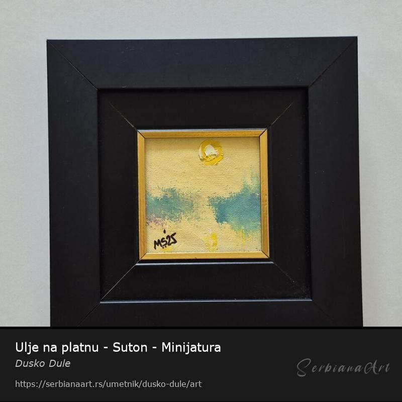 Ulje na platnu Suton, prelepo umetnicko delo. Minijatura. Slika je uramljena u jako lep ram, dimenzije slike sa ramom 23 x 23. Privatna kolekcija.