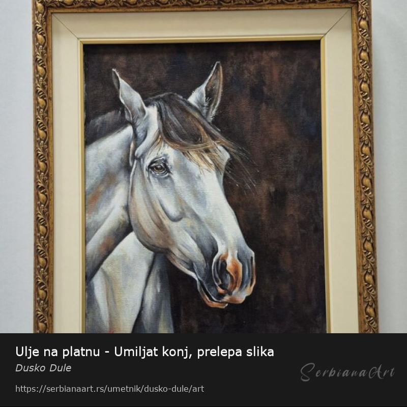 Ulje na platnu Umiljat konj, prelepo umetnicko delo. Akademski slikar. Slika je uramljena u jako lep ram, dimenzije slike sa ramom 52 x 42. Privatna kolekcija.