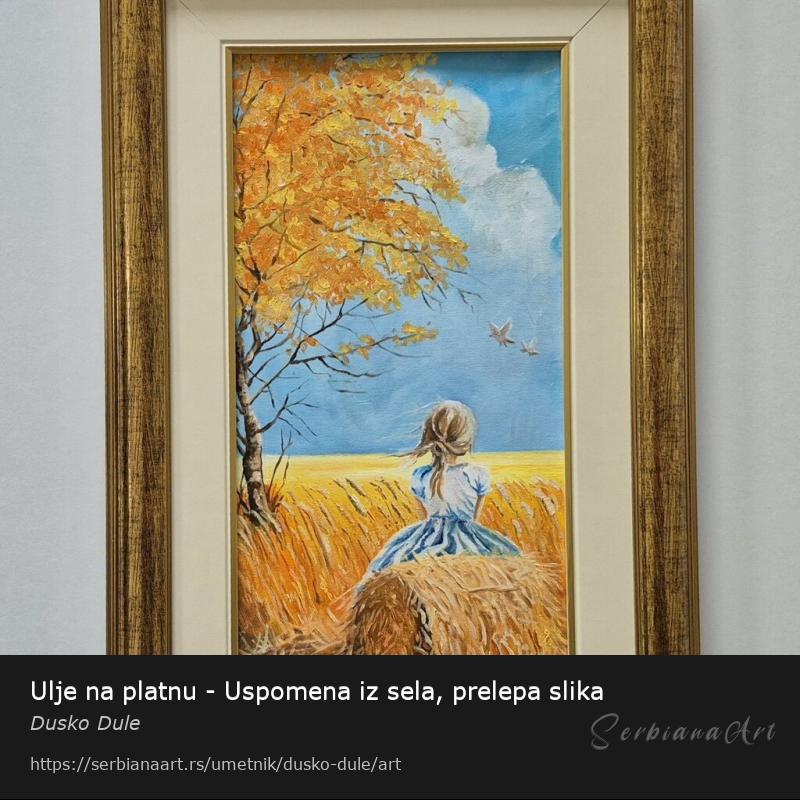 Ulje na platnu Uspomena iz sela, prelepo umetnicko delo. Slika je uramljena u jako lep ram, dimenzije slike sa ramom 55 x 35. Privatna kolekcija.