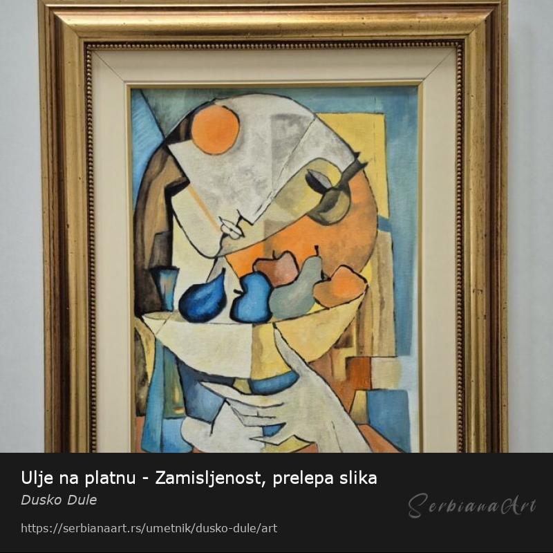 Ulje na platnu Zamisljenost, prelepo umetnicko delo. Slika je uramljena u jako lep ram, dimenzije slike sa ramom 58 x 48. Privatna kolekcija.