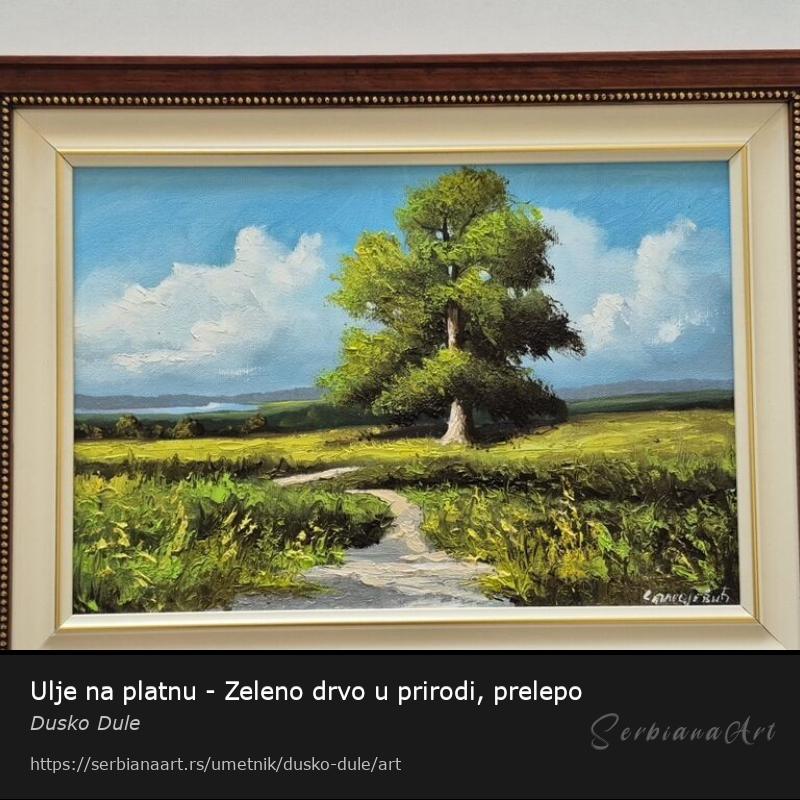 Ulje na platnu Zeleno drvo u prirodi, prelepo umetnicko delo, slika je uramljena u jako lep ram, dimenzije slike sa ramom 48 x 36. Privatna kolekcija.