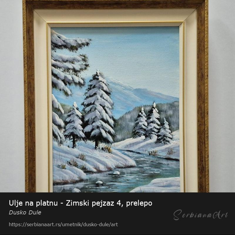 Ulje na platnu Zimski pejzaz 4, prelepo umetnicko delo. Slika je uramljena u jako lep ram, dimenzije slike sa ramom 45 x 35. Privatna kolekcija.