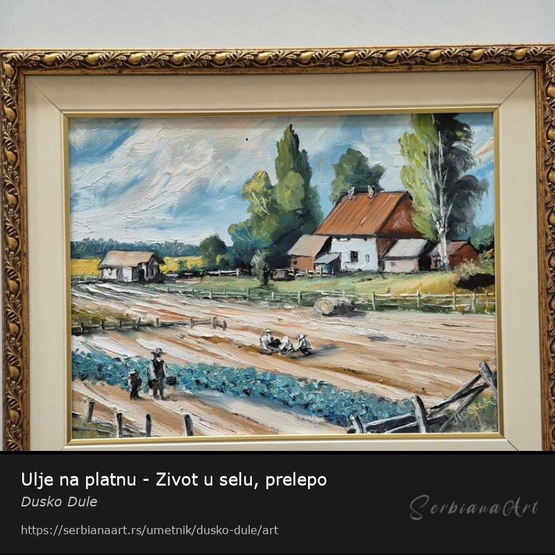 Ulje na platnu Zivot u selu, prelepo umetnicko delo. Slika je uramljena u jako lep ram, dimenzije slike sa ramom 51 x 41. Privatna kolekcija.