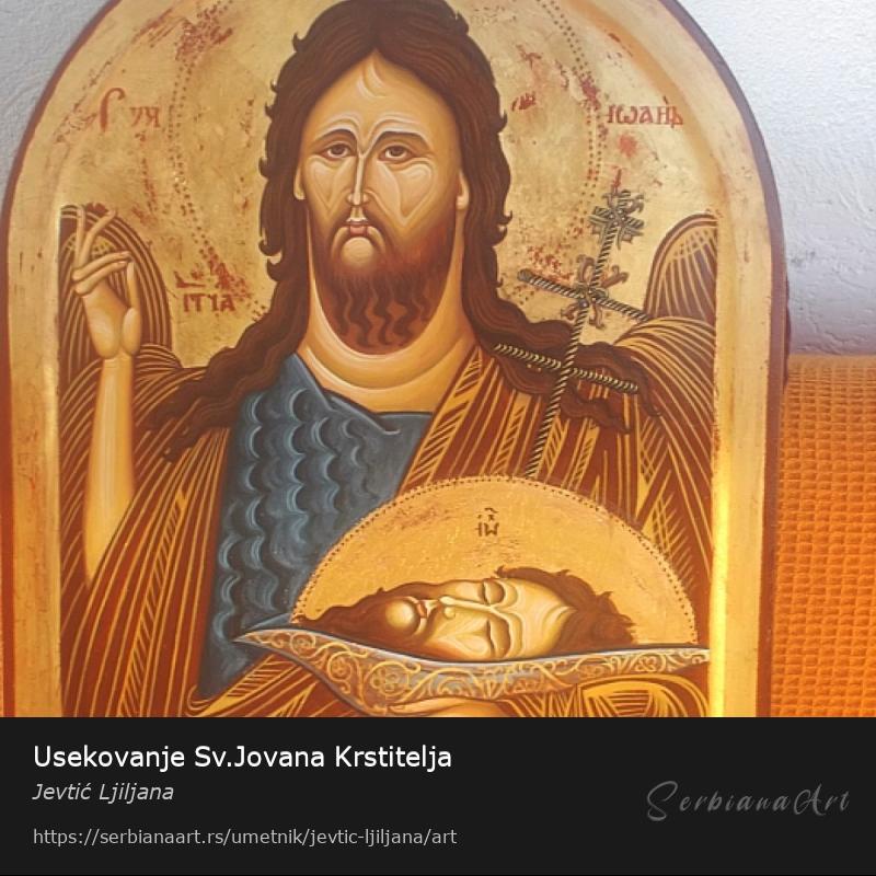 Usekovanje Sv.Jovana Krstitelja, 40 x 50cm, jajcana tempera na lipovoj dasci, zlatni listici 22,5 karata.Podelite i promovišite ovo delo