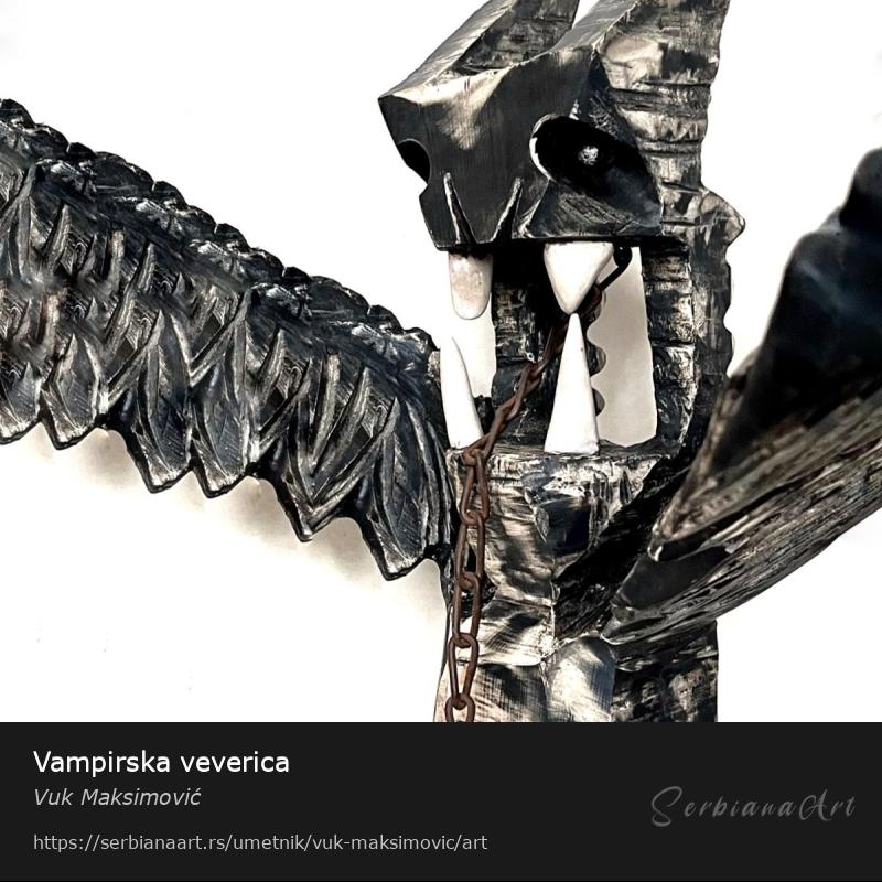 Вампирска веверица је тотем направљен од терацо бетона, дрвета, метала и камена.