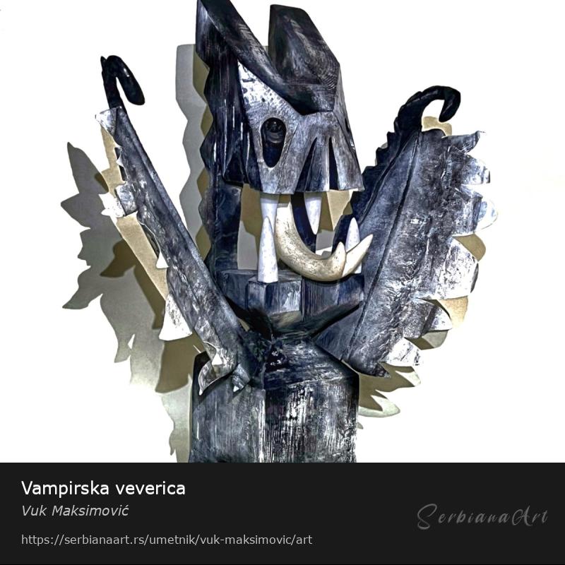 Опус Вука Максимовића је разноврстан како по визуелној форми, тако и по симболичком контексту који аутор креативно уноси у своја уметничка дела. Осим предмета који могу имати практичну функцију и бити од користи у свакодневном животу, Максимовићева дела обухватају и скулптуралне представе различитих митолошких бића и симбола, које потичу из његовог интересовања за етнологију и антропологију. Поред естетског аспекта, ова уметничка дела, комбинујући дрво, метал, камен, топле и хладне материјале, који су на неки начин антиподни, оличавају и различите симболичке...