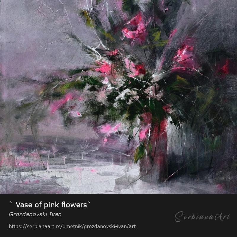 Original artwork description: " Vase of pink flowers ".. W 97 x H 121 cm.....Painted with expressive moves.......with pallet knife and with a brush..... I'm giving all best, to be represent the true colors of the paintings in the photos, but sometimes you can see a little difference in tone.. I take good care packing my art, so it comes to you in the great shape. This work of art was made on professional Italian canvas 340 gr / m2 Note !!! I am sending this artwork rolled up in a plastic tube .!! The painting on the wall of the room is not in true scale....!!!! All my artwork is original !!! Materials used: Acrylic ( Liquitex) & Oil ( Van Gogh)..... on the end covered with a satin coat of varnish, to protect it for the UV and dustPodelite i promovišite ovo delo