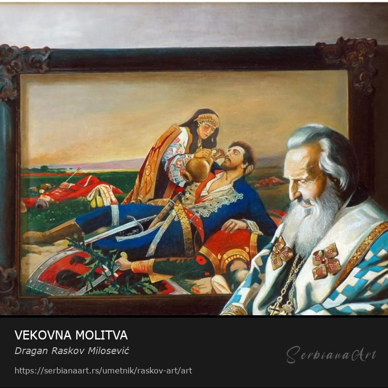 Patrijarh Pavle se moli ispred slike Kosovka Devojka