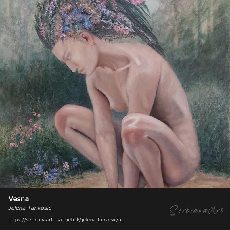 Serbian painter Jelena Tankosic`s works can be found in private collections worldwide. Tankosic works with acrylic on canvas, which she occasionally augments with a touch of oil. Tankosic`s first concern is texture- once she is satisfied with the textural balance, she composes the forms. Inspired by symbolism and mythology, Tankosic often paints scenes from matriarchal societies, as well as images from nature. Joyful and ornate, Tankosic`s pieces fuse abstract impressionism with realism in richly textured scenes.Umetnik Jelena Tankosic (Srbija).