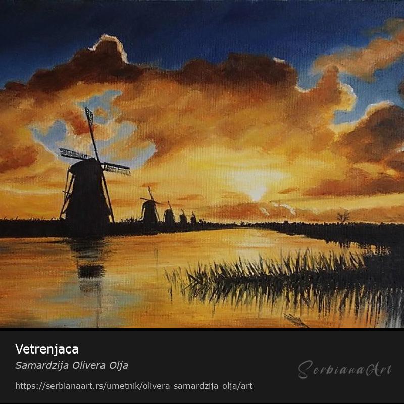 Zivim i radim u Novom Sadu. Studirala sam Gradjevinski fakultet, ali je slikanje oduvek bilo moj hobi, a aktivno slikam od 1995. godine. Imala sam tri samostalne izlozbe i ucestvovala sam na vise kolektivnih. Sve slike su radjene tehnikom ulje na platnu. Moje radove mozete videti na: olja-art.comSlike radim i po narudzbini, tako da mozete sami odabrati motiv i velicinu slike. Slike ne saljem u inostranstvo.Umetnik Samardzija Olivera Olja (Srbija).