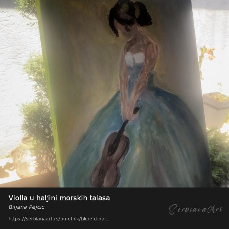 Viole u haljini od morskih talasa je metafora za ženu koja nosi okeane u sebi, ali je svet vidi samo dok traje predstava, a ona je nezna i posvećena muzici