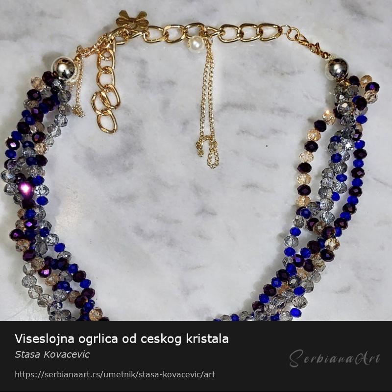 Ručno izrađena ogrlica od češkog kristala sa dodacima bisera, privesci lanac i kopča pozlata od nerđajućeg čelika.