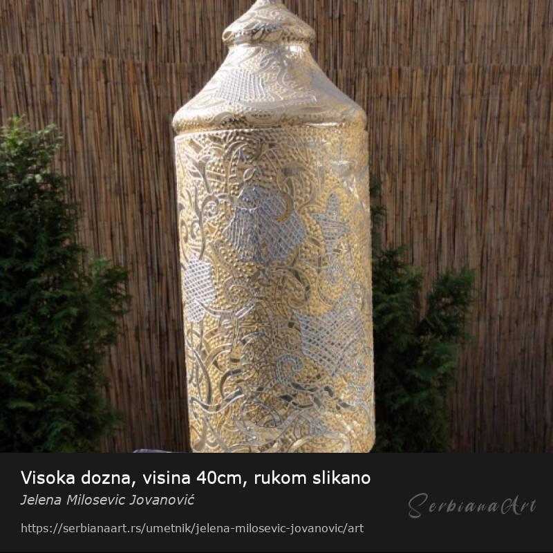 Visoka dozna, visina 40cm, rukom slikano, unikatno staklo.Podelite i promovišite ovo delo