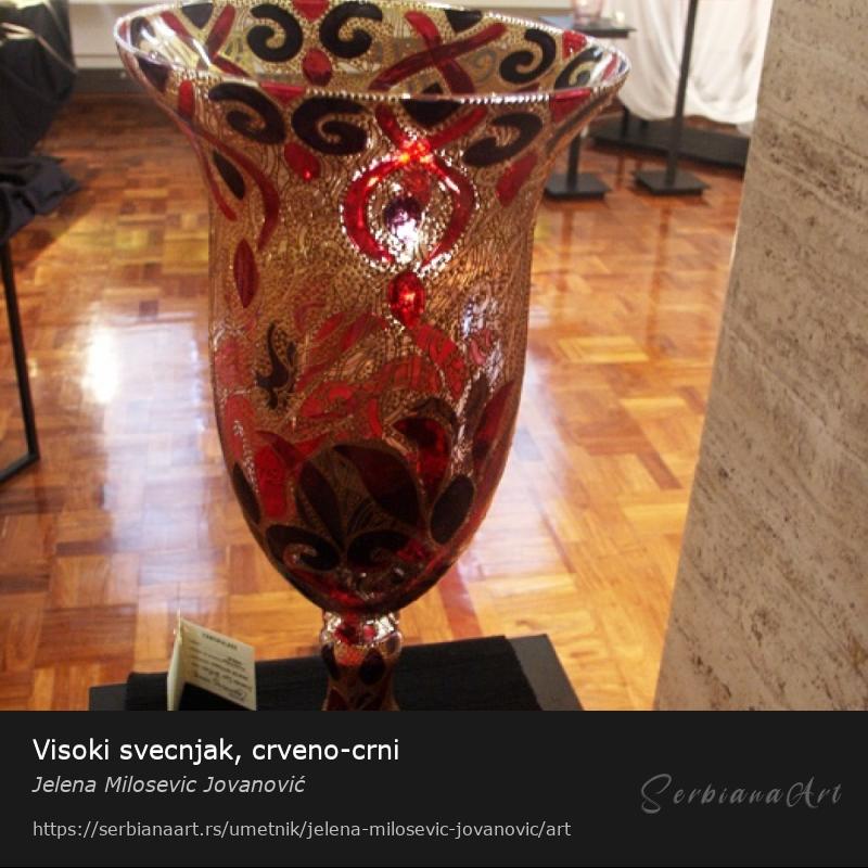 Visoki svecnjak, crveno-crni, rucno slikano, unikatno staklo, visina 60cm.Podelite i promovišite ovo delo