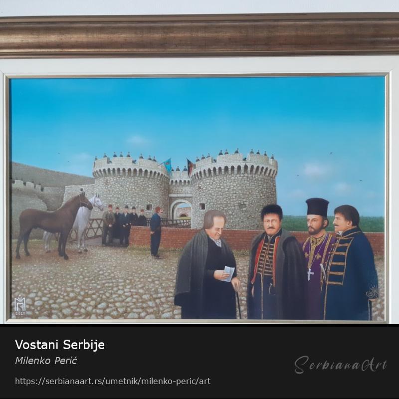 Vostani Serbije 33x50cm , monotipija na platnu sa doslikanim detaljima, uramljena, sa mesinganom pločicom.