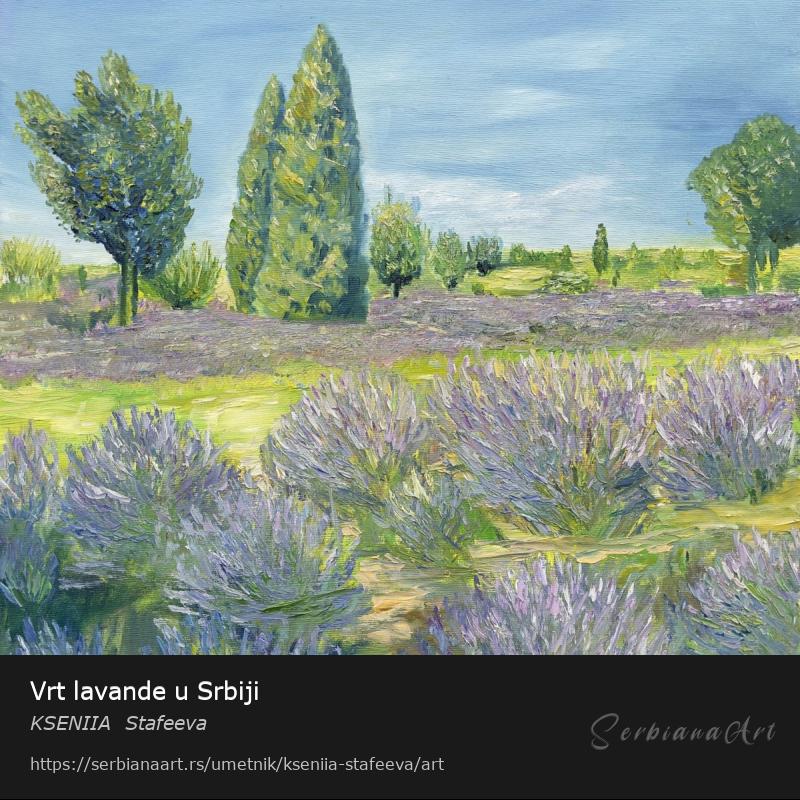 У Србији сваког пролећа лаванда цвета на периферији малог града. Њен мирис носи наду у величину и угодан живот. Ова слика је насликана у самом парку, око мене су летеле осе и лепи лептири. Дајем вам сунце сенке и игру мириса на платну