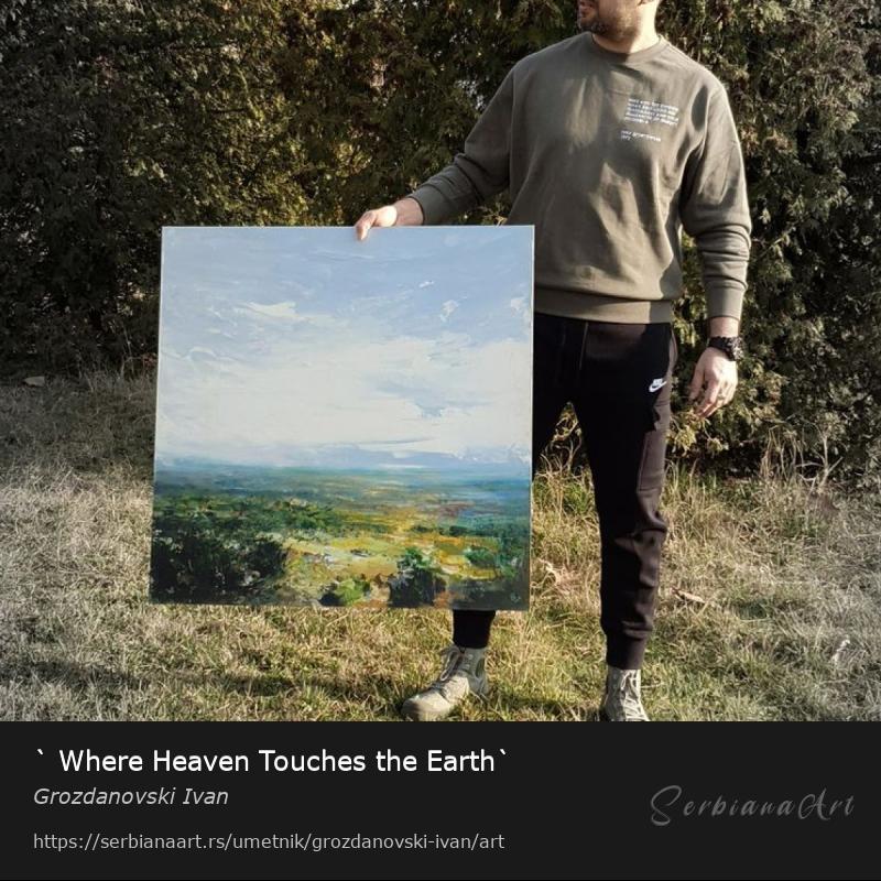 Artwork description: " Where Heaven Touches the Earth "...Impressionistic style....... ....Painted with expressive moves...........with a lot of emotion!!!... SPECIAL PRICE!!! Large Painting W80xH80cm I'm giving all best, to be represent the true colors of the paintings in the photos, but sometimes you can see a little difference in tone.. I take good care packing my art,so it comes to you in the great shape. Note !!! The painting on the wall of the room is not in true scale....!!!! All my artwork is original !!!! Materials used: Acrylic ( Liquitex) & Oil ( Van Gogh)..... on the end covered with a satin coat of varnish, to protect it for the UV and dustPodelite i promovišite ovo delo