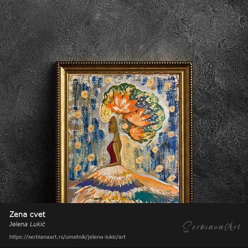 Akril na platnu, slika Žena cvet, 35x50 cm dimenzije, apstraktni ekspresionizam umetnički pravac