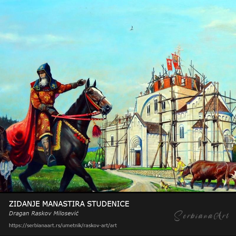 Figurativni prikaz Stefana Nemanje i njegove žene Ane dok se gradi manastir Studenica...