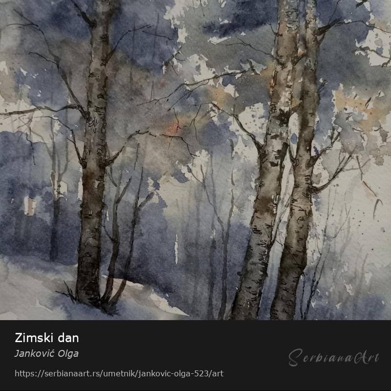 Zimski dan sam slikala akvarel tehnikom na Fabrijano 300gr akvarel papiru.