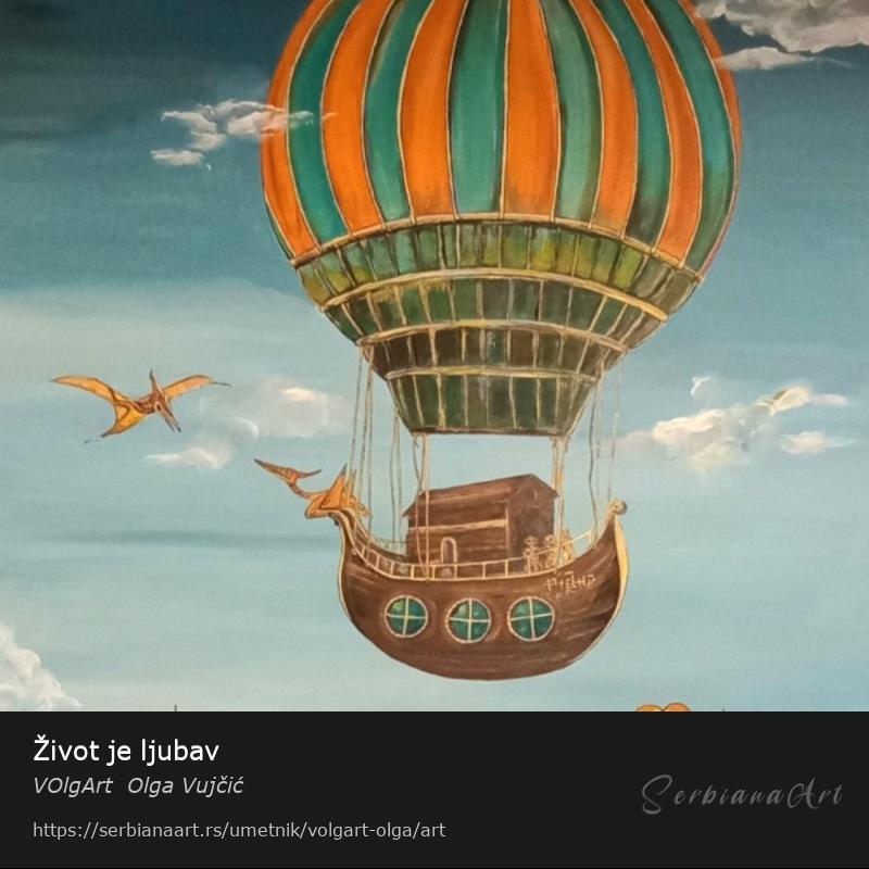 Arka, koju nosi balon, čuva figure Vinčanske kulture — čuvarice znanja, začetnice života i simboli večne ženstvene snage. Na njoj, na zaboravljenom jeziku, piše: „Život je ljubav.”