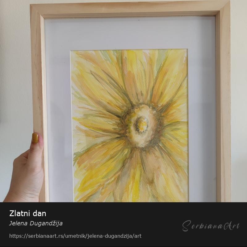 Slika "Zlatni dan" je deo kolekcije inspirisane letom i suncokretima. Veličina slike sa ramom je 30 X 40 cm.