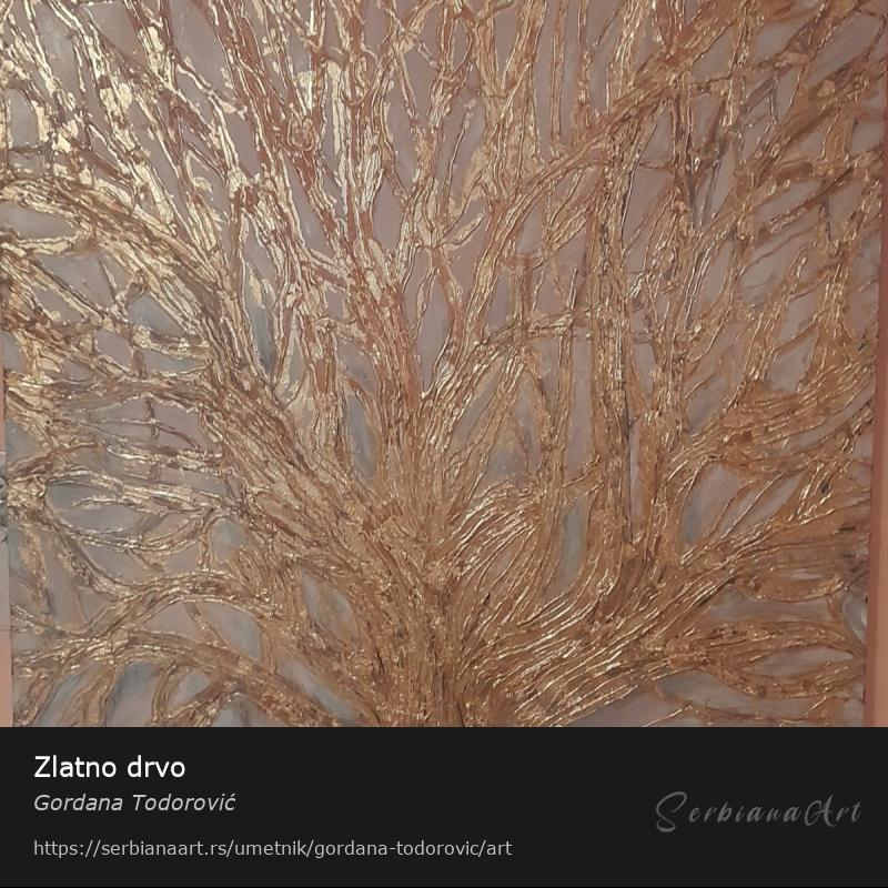 Inspirativno i originalno delo sa zlatnim nanosom.Deluje mocno i ukrasava ceo prostor.Deblje je platno pa nije potreban ram.